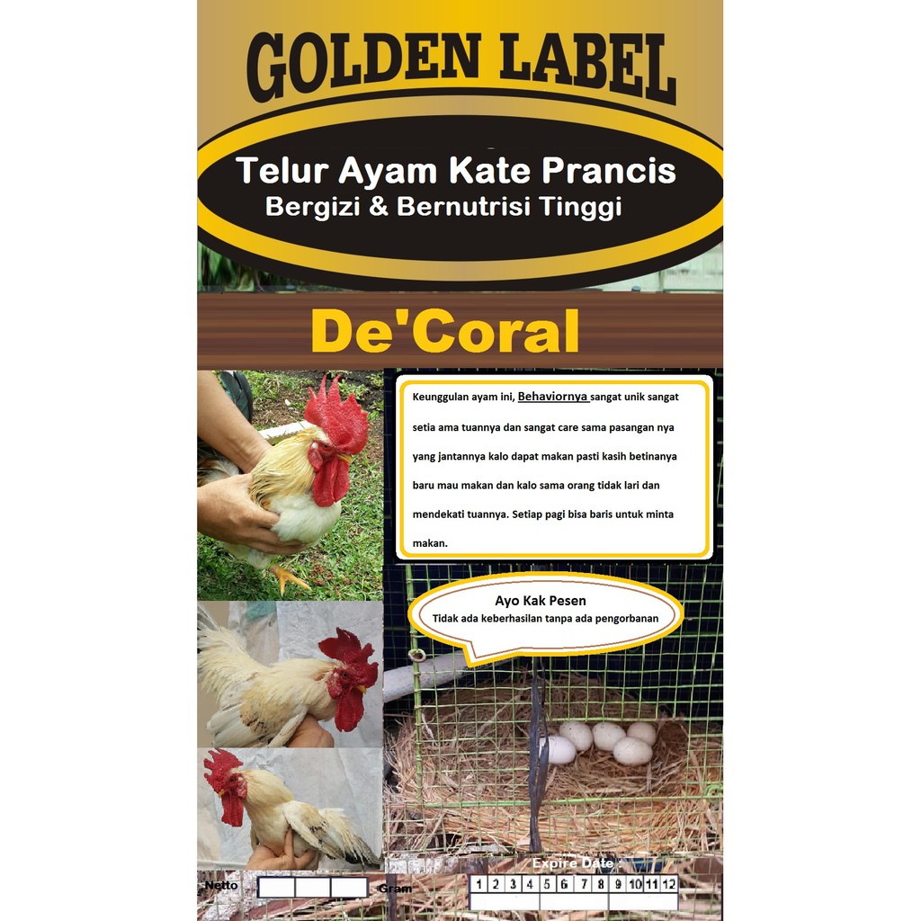 Dalam tiap butirnya, telur ayam kampung memiliki kandungan omega 3, lemak, protein sesuai namanya, ini merupakan telur yang dihasilkan oleh ayam kate.